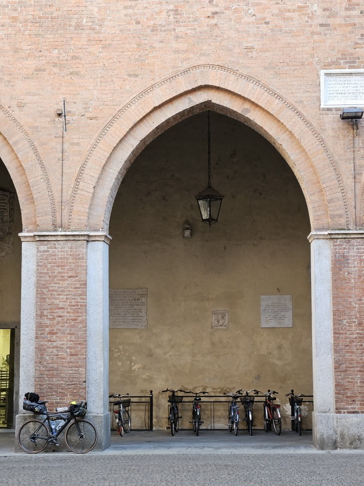 - end of the day shopping in Cerea, I committed the sin of buying bottled water, I couldn’t even contain it all in my bidons, so I at least gave the rest to a Romanian hobo (with whom I shared (had to share) the bike lot)