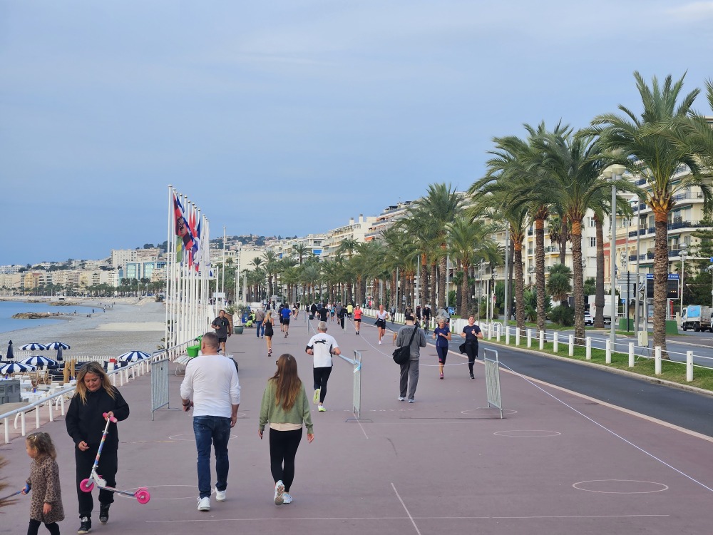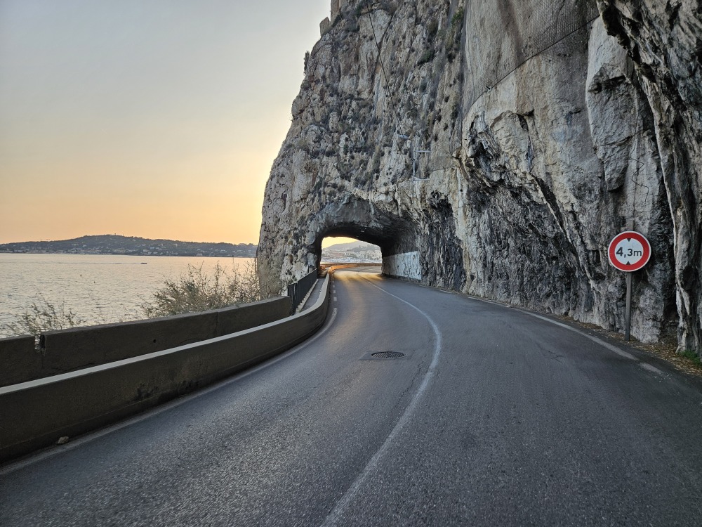 I did ~1° in day, that’s time shift 4 min/day, daylength in Nice (~centerpoint of the trip) changed from 11:10:42 on Oct 12 to 10:28:03 on Oct 27, i.e. 2m50s per day, so I outpaced the sun (at least the sunsets)